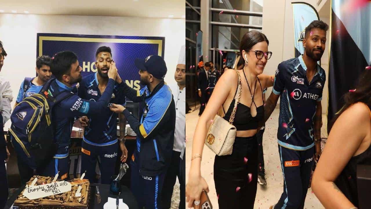 IPL 2022 Final: हार्दिकच्या तोंडाला केक फासला, पंड्या-नताशा साथ-साथ, पहा विजयानंतरचे काही खास Inside Photos