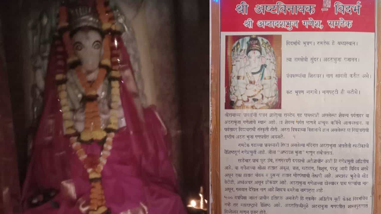 नागपुरातील ज्येष्ठ नागरिक मंडळातील सहल तिथं काल गेली होती. त्यावेळी ज्येष्ठांनी ही मूर्ती बघितली. रामटेकच्या महागणपतीच्या मंदिरात या अठराभूजाधारी गणेशाच्या मूर्तीची प्रतिष्ठापना करण्यात आली आहे.