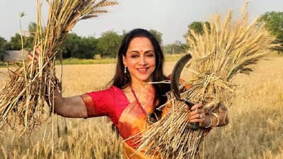 हेमा मालिनी यांनी सोशल मीडियावर चार विविध फोटो पोस्ट केले आहेत. या फोटोंमध्ये त्या पीक कापणी करताना, कापणी केलेल्या पिकासोबत फोटोसाठी पोझ देताना आणि शेतमजूर महिलांसोबत उभं राहून फोटो काढताना दिसत आहेत.