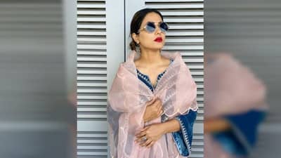 कुर्ता, पायजामा आणि ओढणी असा हा हीनाचा लूक तिला मस्त दिसतोय.