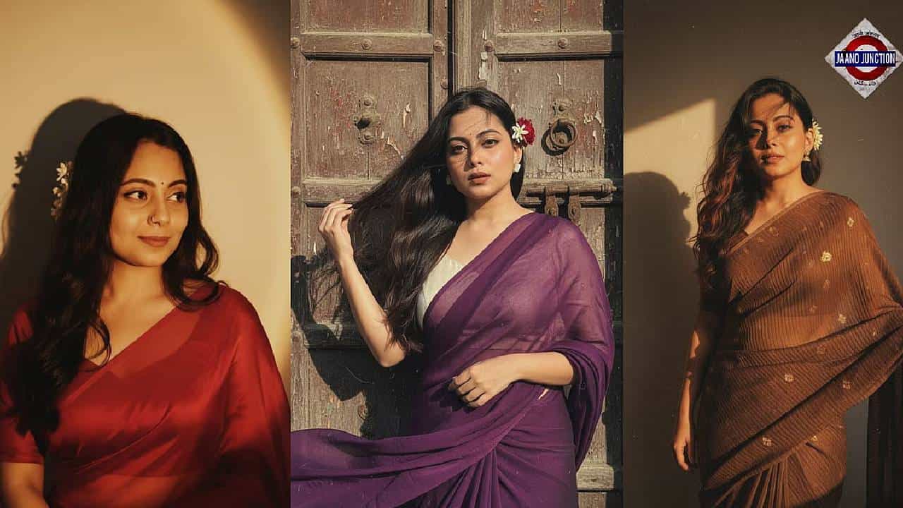 पांढऱ्या साडीतील फोटो हवा असेल तर - Create a 4K HD realistic portrait of a woman in a translucent white polka dot saree with blouse for the reference image. Keep the facial features and smile the same. Small pink flower tucked behind her ear, soft, serene expression, warm light from the right casting a cinematic profile shadow. Pure vintage diva energy. असा प्रॉम्प्ट टाका.