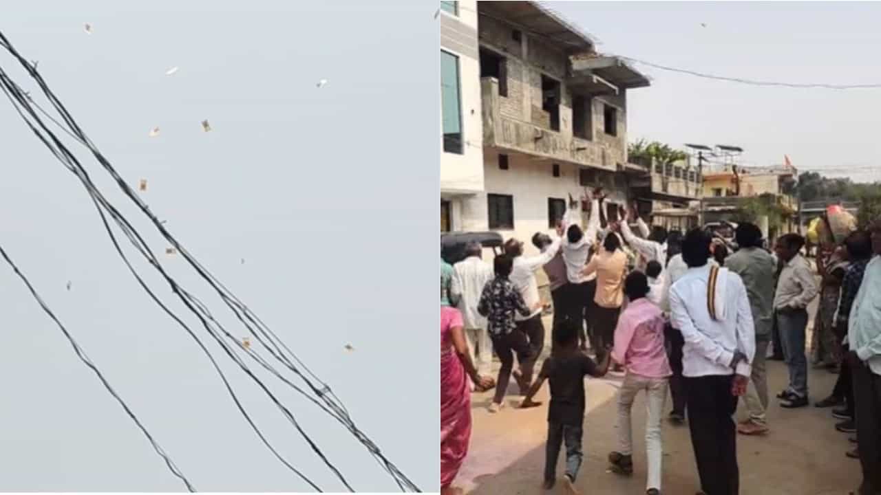 गावातील मंदिरावरून हनुमानाच्या मूर्तीची प्रतिष्ठापणा झाल्यानंतर 10, 20 आणि 50 रुपयांच्या हजारो नोटांची उधळण कारण्यात आली. यासोबतच 5 आणि 10 रुपयांचे नाणीही यावेळी उधळण्यात आले आहेत.