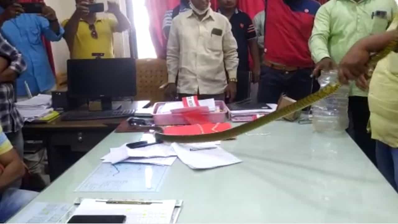 ग्रामीण भागात शेतीसाठी रात्री लाईट दिली जाते, ती लाईट दिवसा मिळावी ही तिथल्या शेतक-यांची मागणी, पण महावितरण अधिका-यांनी दिवसा लाईट देण्यास नकार दिल्याने शेतक-यांनी अधिकाऱ्यांच्या टेबलाव साप सोडले आहेत.