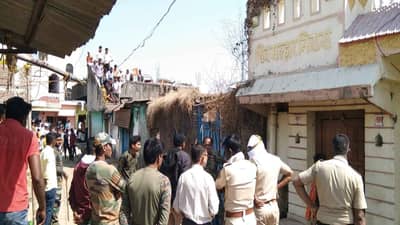 एका घरात आश्रयाला आलेली निलगाय. अनेक घरांचा आश्रय घेतला. गावकरीही तिला हाकलून लावण्यासाठी प्रयत्न करीत होते. त्यामुळे ही नीलगाय आणखीनच सैरावैरा पळू लागली.