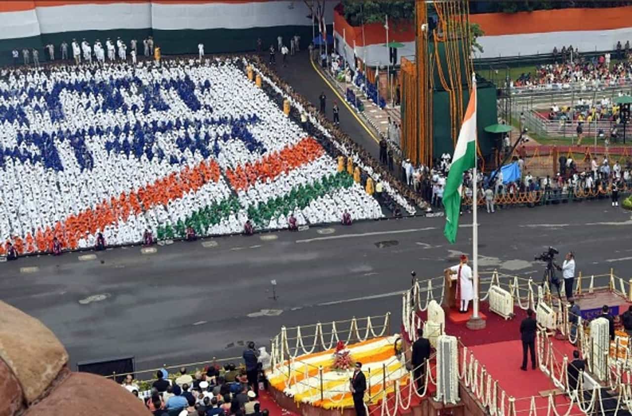 पंतप्रधान नरेंद्र मोदी यांच्या हस्ते राजधानी दिल्लीतील लाल किल्ल्यावर ध्वजारोहण करण्यात आलं.