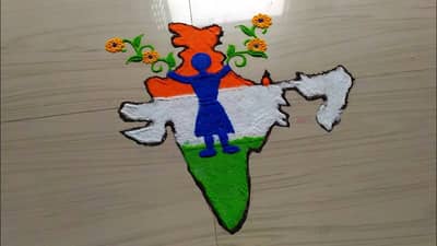या स्वातंत्र्यदिनी तुम्ही सोप्या आणि अप्रतिम रांगोळी डिझाईन तयार करू शकता. फोटोत पाहा ही डिझाईन, जी छोटी आणि क्यूट आहे. घराच्या दारात तुम्ही ते बनवू शकता. तसेच तिरंगा रंग आणि फुलांनी सजवू शकता.