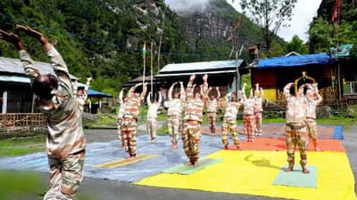 अरुणाचल प्रदेशातील सीमा चौकीवर आयटीबीपीचे जवान योगा करताना दिसले. योग जवानांसाठी खूप उपयुक्त असल्याचं म्हटलं जातं, कारण त्यामुळे सर्व प्रकारच्या तणावापासून संरक्षण करता येतं.