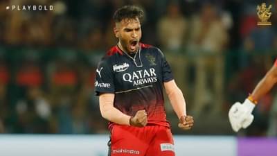 पहिल्याच सामन्यात वैशाक विजयकुमारने 4 षटकं टाकतं 20 धावा आणि तीन गडी बाद केले. पदापर्णातच आरसीबीसाठी त्याने ही कामगिरी केली. आता आगामी सामन्यासाठी आपलं स्थान निश्चित केलं आहे. (Photo : Twitter)