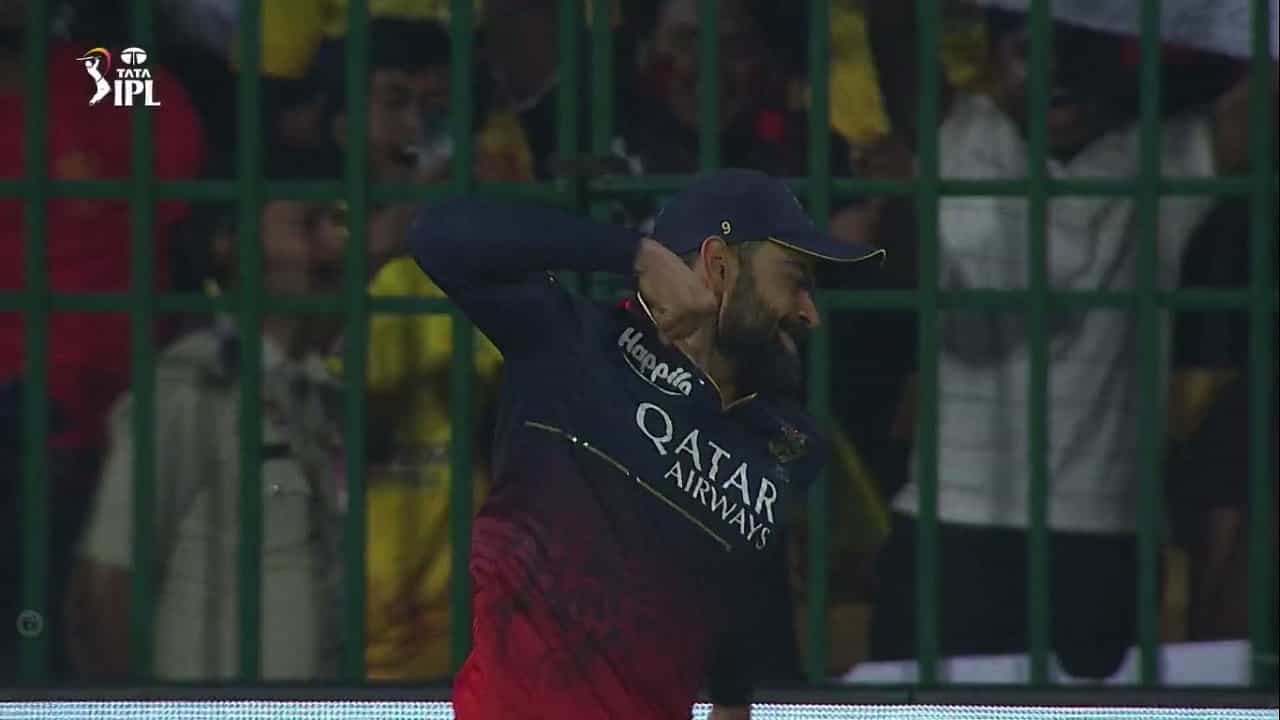 आरसीबीने नाणेफेक जिंकत प्रथम क्षेत्ररक्षण निवडलं. यावेळी चेन्नईच्या फलंदाजांनी आक्रमक खेळी केली. मात्र क्षेत्ररक्षण करताना विराट कोहलीचा आक्रमक पवित्रा दिसून आला. याच कृतीचा त्याला फटका बसला आहे. (Photo : BCCI/IPL )