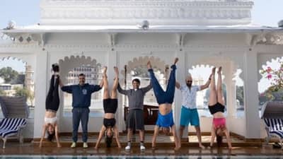 या फोटोमध्ये चक्क लग्नाच्या ठिकाणी सर्वजण व्यायाम करताना दिसत आहेत. आता इरा खान हिने शेअर केलेले हे फोटो सोशल मीडियावर व्हायरल होत आहेत.