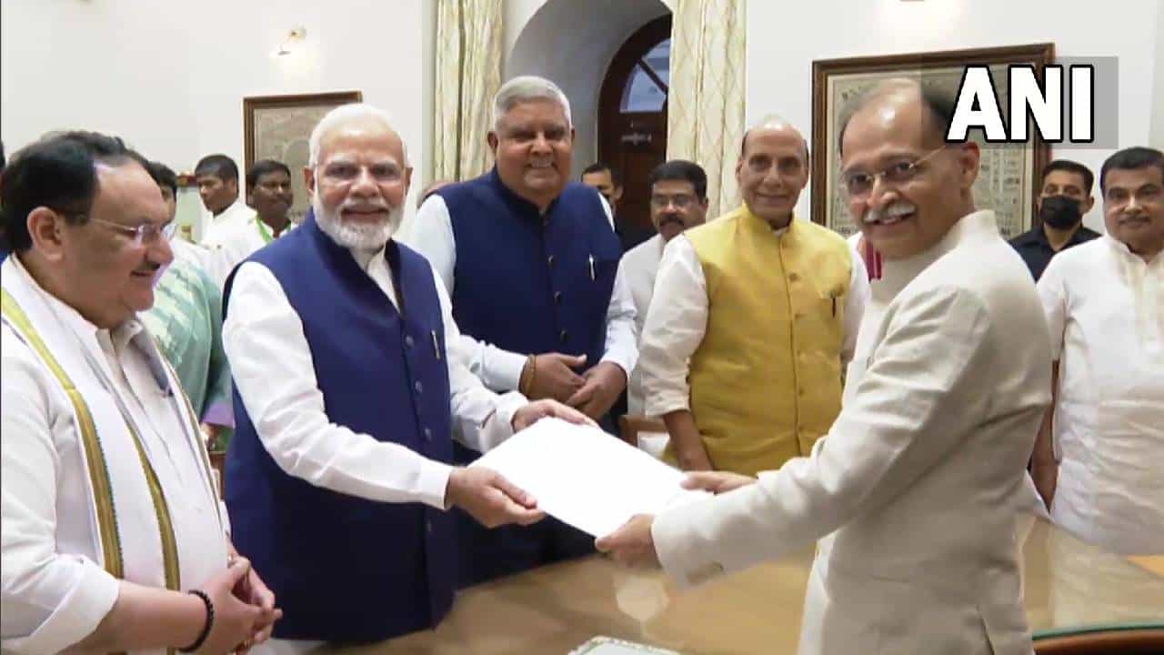 पश्चिम बंगालचे माजी राज्यपाल आणि भाजप नेते जगदीप धनखर यांनी एनडीएचे उमेदवार म्हणून उपराष्ट्रपतीपदाच्या निवडणुकीसाठी अर्ज दाखल केला आहे. यावेळी पंतप्रधान नरेंद्र मोदी, गृहमंत्री अमित शहा, संरक्षण मंत्री राजनाथ सिंह, केंद्रीय मंत्री नितीन गडकरी, भाजपचे राष्ट्रीय अध्यक्ष जेपी नड्डा आणि इतर भाजप नेते उपस्थित होते.