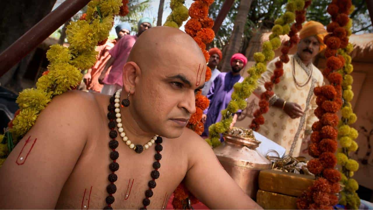 दुसरीकडे, एक अलौकिक तराजू एका बाजूला शांत, स्थिर, तेजस्वी स्वामी बसलेले आणि दुसऱ्या बाजूला मंगलदास एकेक सोन्याच्या भांड्यांनी वजन भरत आहे. पण त्या संपत्तीचा भार स्वामींच्या तेजस्वित्वाशी मुळीच तोंड देऊ शकत नाही. गावकरी अवाक् होऊन हे दृश्य पाहत असतात आणि अखेर त्याची संपत्ती संपते. पण पुण्य संपत नाही.