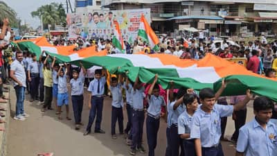 जळगाव जिल्ह्यातील चाळीसगाव शहरात स्वातंत्र्यदिनानिमित्त 760 फूट लांब तिरंगा रॅली काढण्यात आली. यावेळी यावेळी ढोल ताशांच्या गजरात 76 वा स्वातंत्र्य दिन उत्साहात साजरा करण्यात आला.