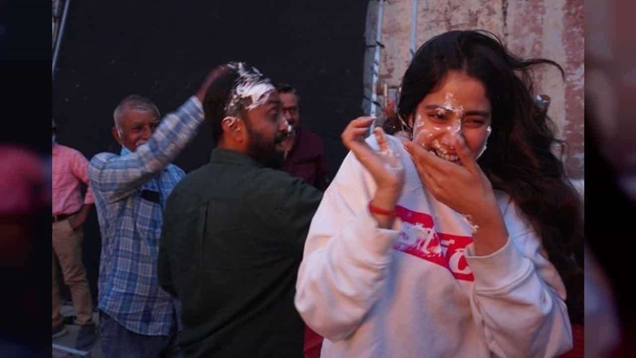 शुटिंगच्या सेटवरही जान्हवीचा वाढदिवस मोठ्या थाटात साजरा करण्यात आला आहे.