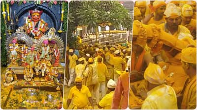 सोमवती यात्रेनिमित्त सकाळी सहा वाजता मोजके पुजारी, मानकरी , खांदेकरी आणि विश्वस्त यांच्या उपस्थितीमध्ये खंडोबा म्हाळसादेवीच्या मूर्तींना दहीदुधाचा अभिषेक घालण्यात आला.