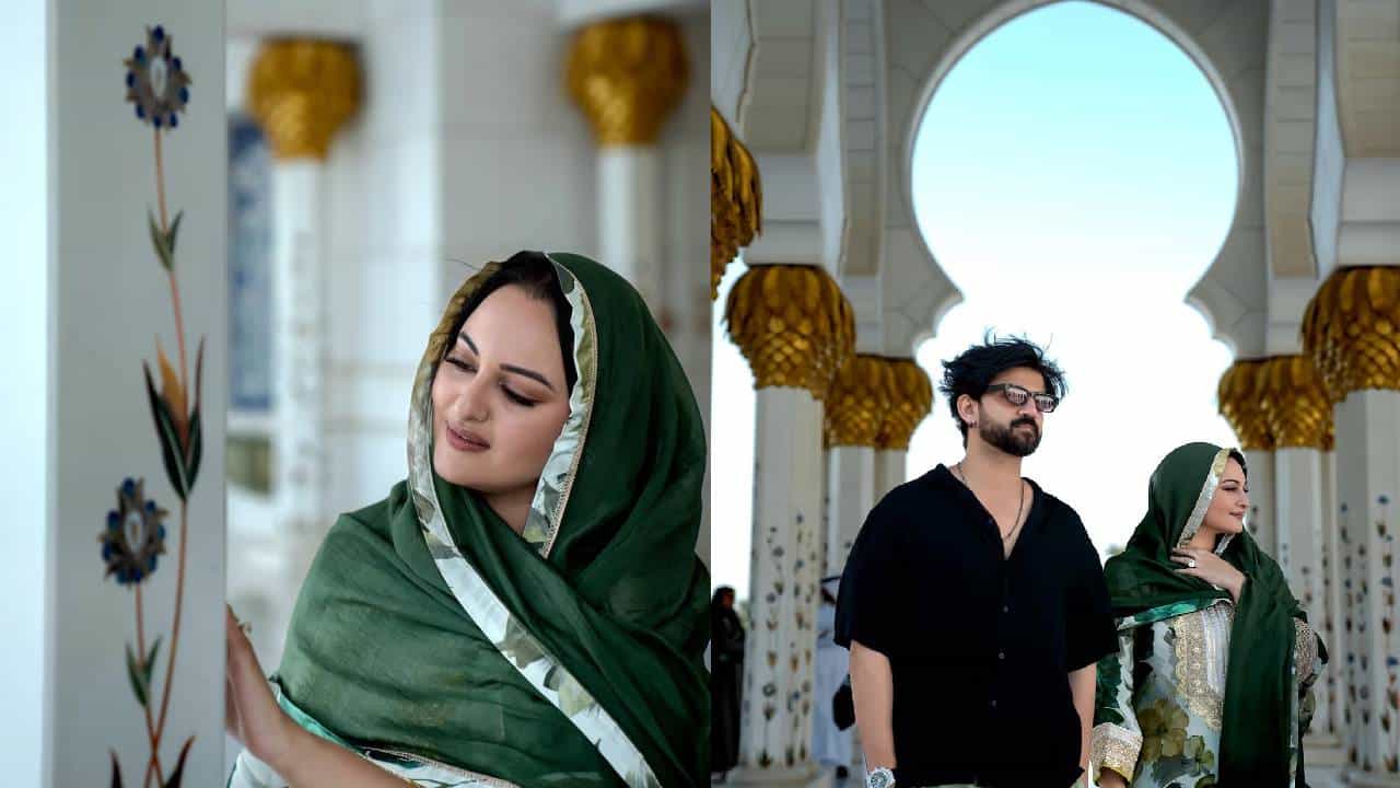 सोनाक्षी सिन्हाने करवा चौथच्या दिवशी तिच्या इन्स्टाग्राम हँडलवर पती झहीर इकबालसोबत अनेक फोटो शेअर केले. या व्हायरल फोटोमध्ये दोघे अबू धाबीच्या शेख जायग ग्रँड मशिदीत दिसले.