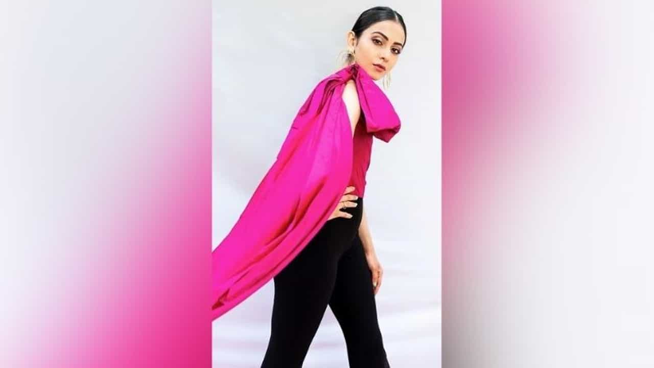 तिच्या आगामी चित्रपटाचा ट्रेलर लाँच होण्यापूर्वी रकुलनं फोटोशूट केले ज्यामध्ये तिनं गुलाबी रंगाचा सिंगल शोल्डर टॉप कॅरी केला आणि त्यासोबत ब्लॅक फिटिंग पॅन्ट परिधान केला होता.