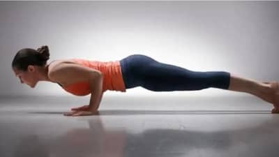 पाय आणि हात जमिनीवर ठेवून सुरुवात करा. अर्ध्या पुश-अपमध्ये आपले शरीर खाली करा. हात समांतर असावेत. 90-अंशाचा कोन करण्याचा प्रयत्न करा. आपले खांदे सरळ करा आणि 10-15 सेकंद या आसनात रहा.