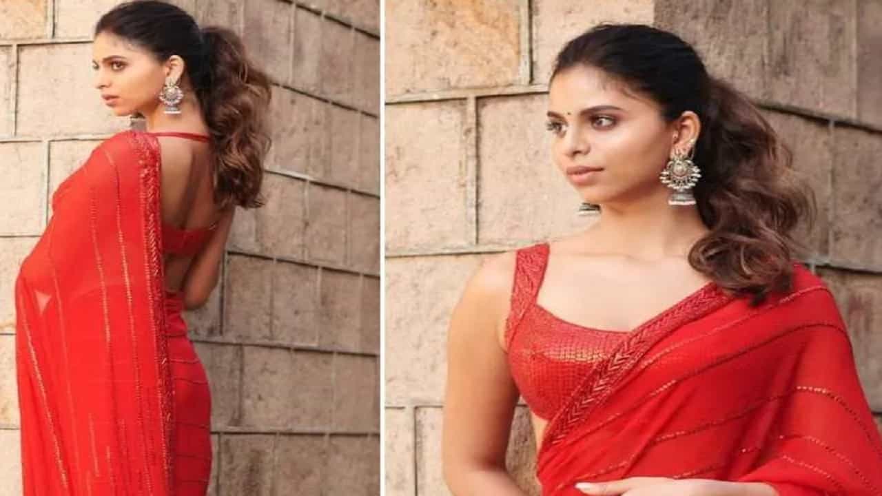 या लाल साडीत सुहाना खान खूपच सुंदर दिसत आहे. सुहानाने या साडीसोबत बॅकलेस ब्लाउज कॅरी केला आहे. कानात सिल्व्हर कलरचे झुमके घातले आहेत. जर तुम्हालाही लग्नामध्ये जायचे असेल तर तुम्ही देखील असा लूक करू शकता.