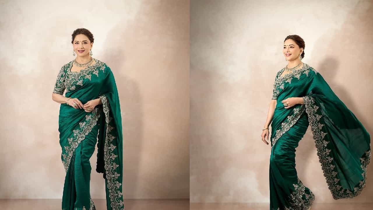 माधुरी दीक्षितच्या रॉयल लूकवर खिळल्या चाहत्यांच्या नजरा, हिरव्या साडीत दिसते प्रचंड सुंदर