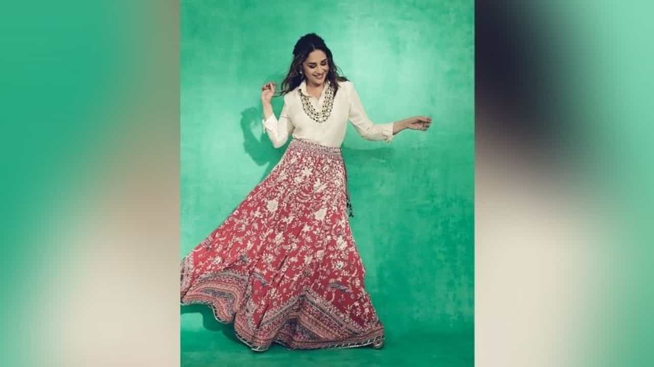 माधुरी दीक्षित सध्या टीव्हीवरील लोकप्रिय कार्यक्रम 'डान्स दिवाने 3' मध्ये परिक्षकाची भूमिका साकारत आहे. नुकतंच एका भागात तिनं लाल रंगाचा फ्लोरल स्कर्ट आणि पांढऱ्या रंगाचं फुल-स्लीव्ह टॉप परिधान केलं होतं.