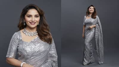 आता या चंदेरी साडीमधील काही फोटो माधुरीनं शेअर केले आहेत. या फोटोत ती कमालीची सुंदर दिसतेय.