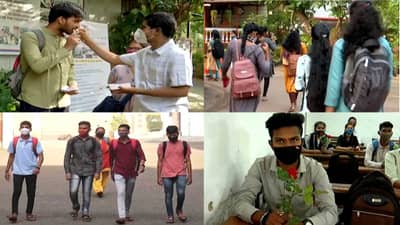 मुंबई - गेले दीड वर्ष बंद असलेली राज्यातील महाविद्यालये आजपासून सुरु होणार आहेत. मर्यादित उपस्थिती, लसवंतांनाच प्रवेश हे नियम लागू राहतील. मात्र, सध्या ऑनलाईन सत्र परीक्षा सुरू असल्याने अनेक महाविद्यालयांनी दिवाळीनंतरच प्रत्यक्ष वर्ग सुरु करण्याचा निर्णय घेतला आहे. त्यामुळे महाविद्यालयांच्या संकुलातील गजबज दिवाळीनंतरच वाढण्याची शक्यता आहे. तर, काही महाविद्यालयं सुरु करण्यात आली आहेत. महाविद्यालयांमध्ये पेढे खाऊ घालून विद्यार्थ्यांचं स्वागत करण्यात आलं.