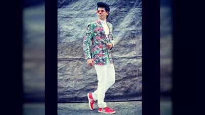 या फोटोमध्ये पांढऱ्या रंगाच्या सूटसोबत त्यानं मस्त फंकी जॅकेट कॅरी केलं आहे.