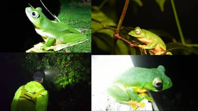 आंबोलीत आढळणाऱ्या या दुर्मीळ 'मलबार ग्लायडिंग फ्रॉग'(उडणाऱ्या बेडकाच्या) जीवनचक्राचा अभ्यास करण्यासाठी सध्या वन्यजीव अभ्यासक व पर्यटक आंबोलीत दाखल झाले आहेत.