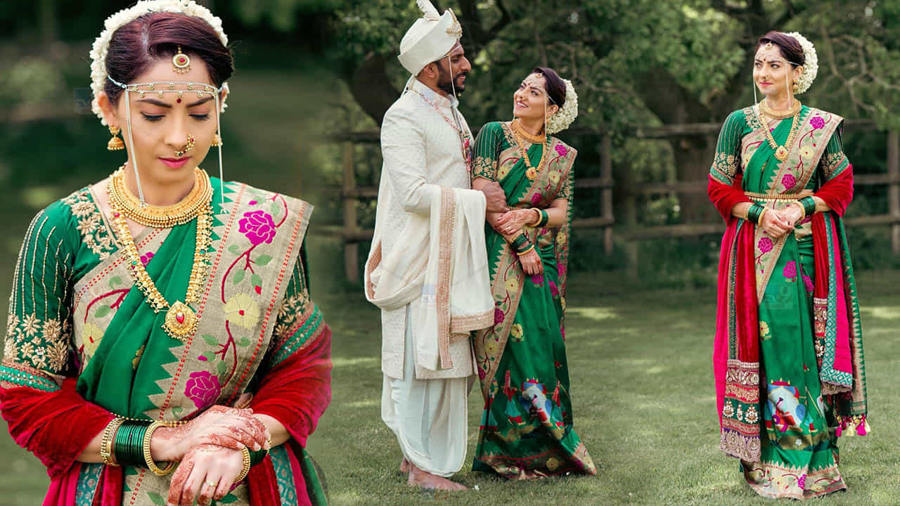 सोनालीने या फोटोत सप्तपदी हिरव्या रंगाची पैठणी परिधान केली आहे