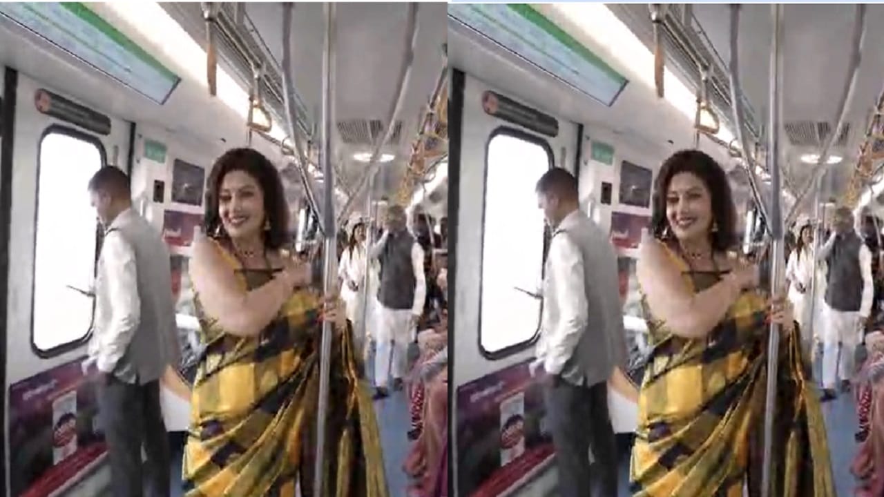 वर्षा उसगांवकर यांचा चक्क मेट्रोमध्ये रॅम्प वॉक; प्रवाशांनी मोबाइल हाती घेतला अन्..