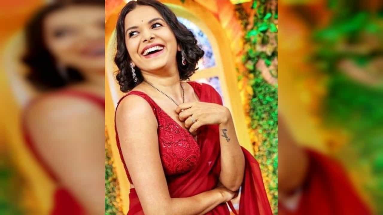 लाल रंगाच्या हटके साडीमध्ये मिताली कमालीची सुंदर दिसली.