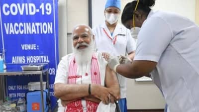 पीएम मोदी यांनी कोरोनाच्या लसीचा पहिला डोस दिल्लीच्या एम्स रुग्णालयात घेतला.