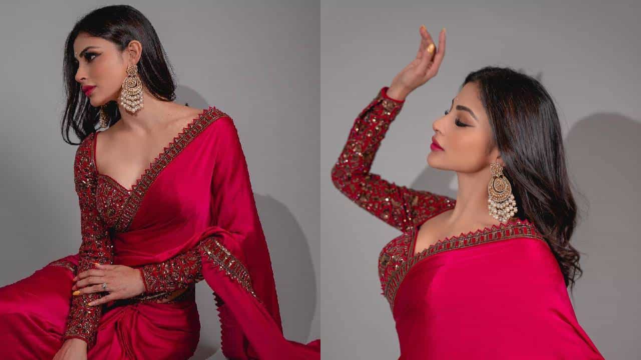 Mouni roy: अभिनेत्री मौनी रॉयचा लाल रंगाच्या साडीतील मोहक अदा