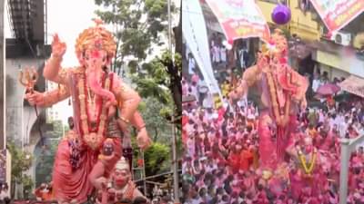 त्यासोबतच राजाच्या स्वागतासाठी अनेक ठिकाणी मोठे मोठे हार, फटाके फोडत बाप्पाचे विसर्जन थाटामाटात केले जात आहे. या मिरवणुकीमुळे मुंबईतील लालबाग परिसरात उत्साहाचे वातावरण निर्माण झाले आहे.