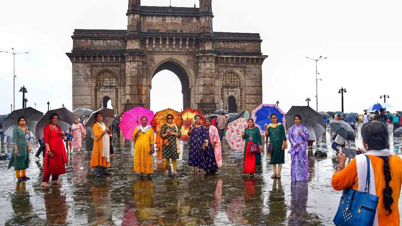 पावसाची मजा घेण्यात महिला मंडळही मागे नाहीत. गेट वे ऑफ इंडिया इथे काही महिलांनी रंगेबेरंगी छत्र्यांसह फोटोशूट केलंय.