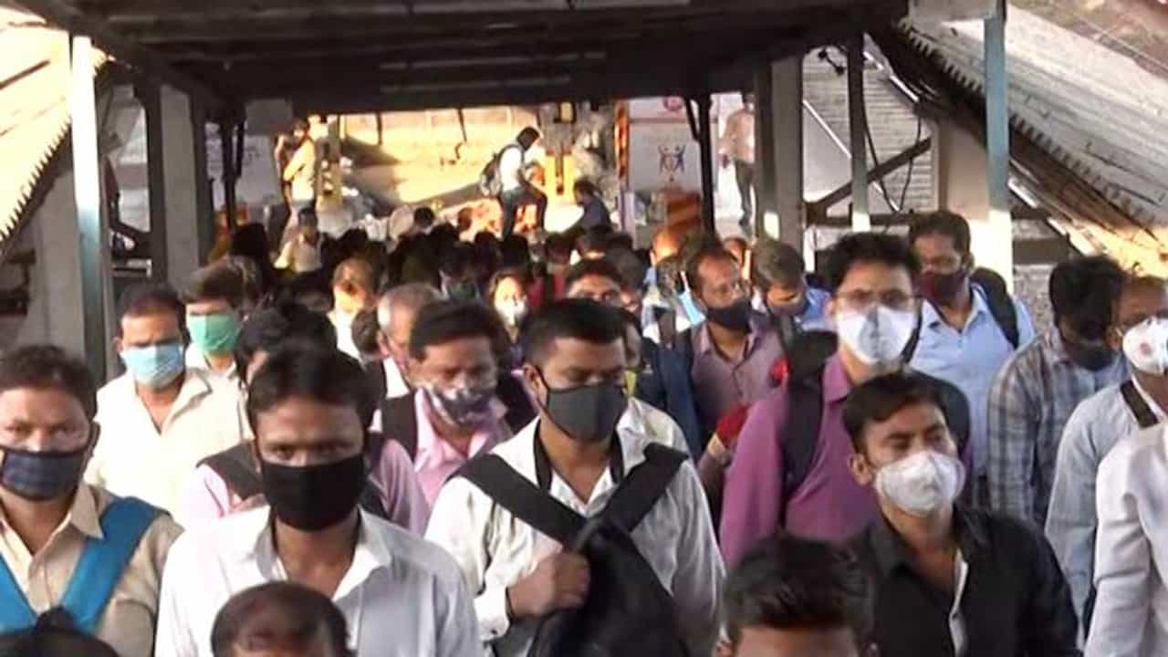 रेल्वे स्थानकांमधील पादचारी पुलांवरही लोकांची मोठ्याप्रमाणावर गर्दी होताना दिसत आहे. यावेळी लोक नियमांची तमा न बाळगता एकमेकांना खेटून चालताना दिसत आहेत.