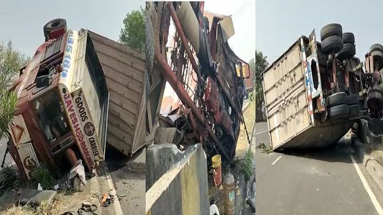 भीषण अपघातात कंटेनर पलटी
