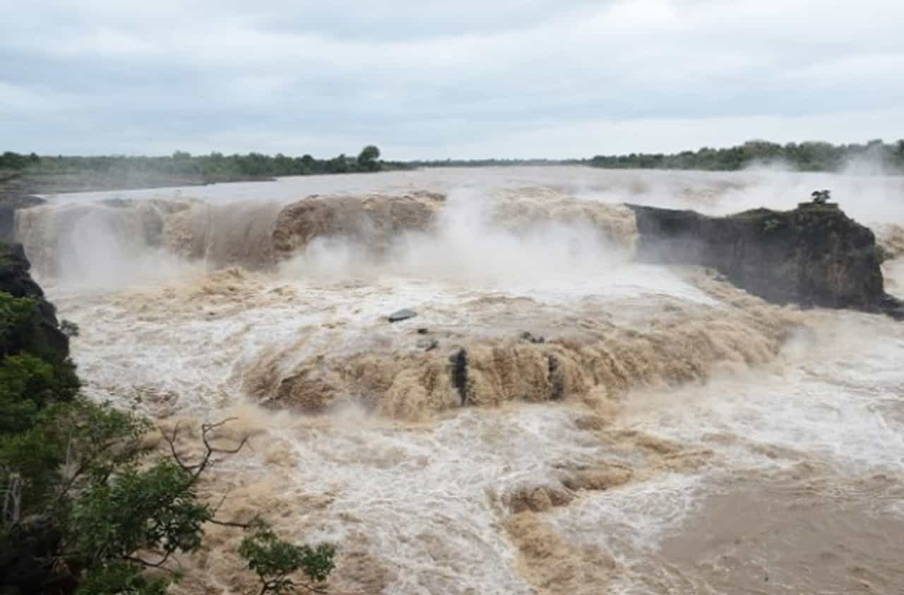 पैनगंगा नदीला पूर आल्याने सहस्रकुंडच्या धबधब्याने अक्राळविक्राळ रुप धारण केले आहे