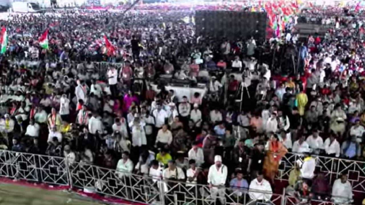 बीकेसीचे मैदान खचाखच भरल्याचे देखील दिसत आहे. लोकांनी या सभेला लोकांनी अलोट अशी गर्दी केलीये.