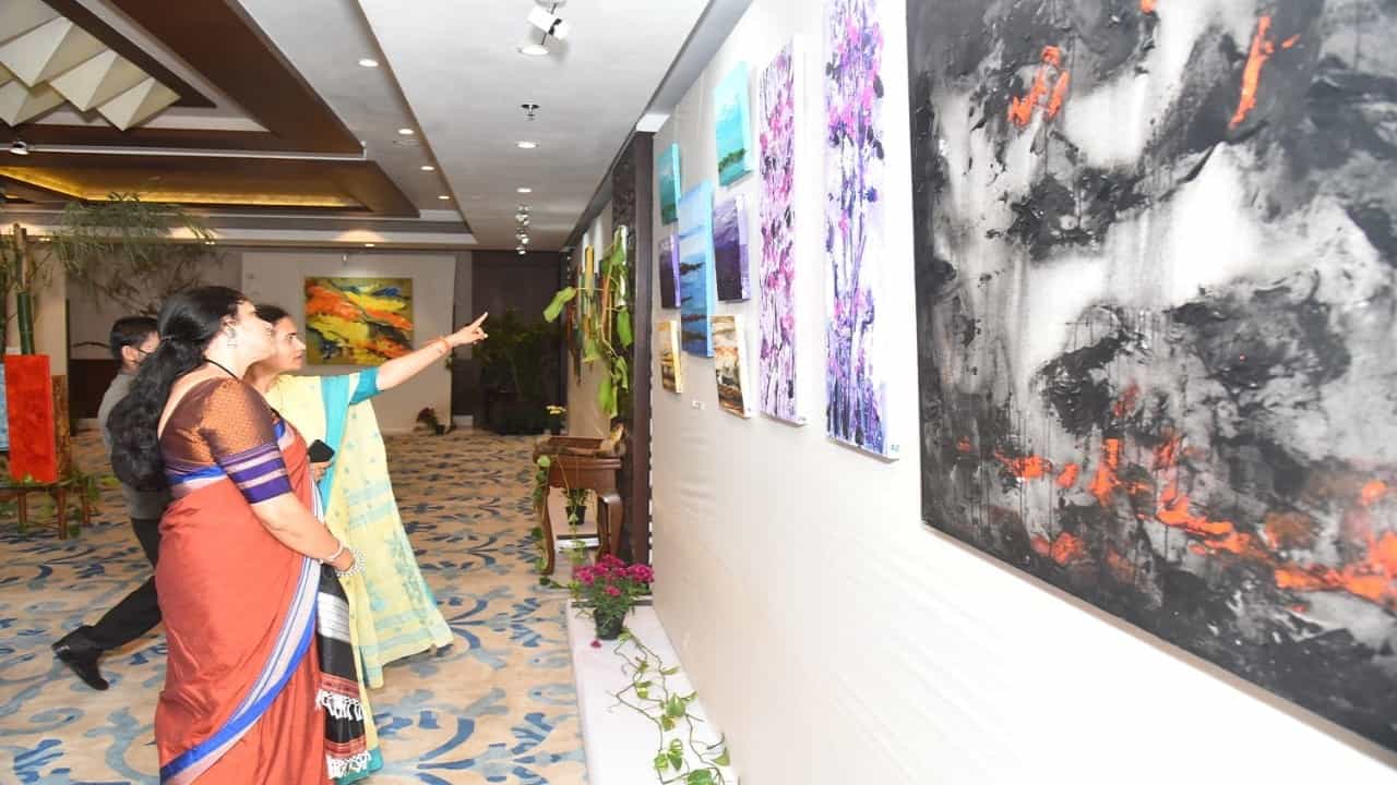 चित्रांमधील रंग संगती, निसर्गाची विविध रूपे पाहून रसिकांच्या डोळ्यांचे पारणे फिटत आहे.
