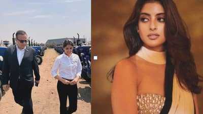 एका फोटोमध्ये, नव्या ही निखिल नंदासोबत अनेक ट्रॅक्टरमधून फिरताना दिसत आहेत. एकमेकांसोबत वेळ घालवून दोघेही खूप खुश दिसत आहेत.