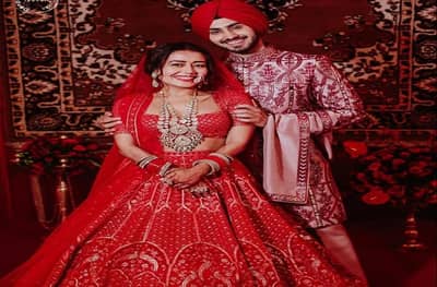 नेहानं लाल रंगाचा लेहंगा परिधान केला आहे तर रोहनप्रीतनंही लाल रंगाचाच कुर्ता परिधान केला आहे.