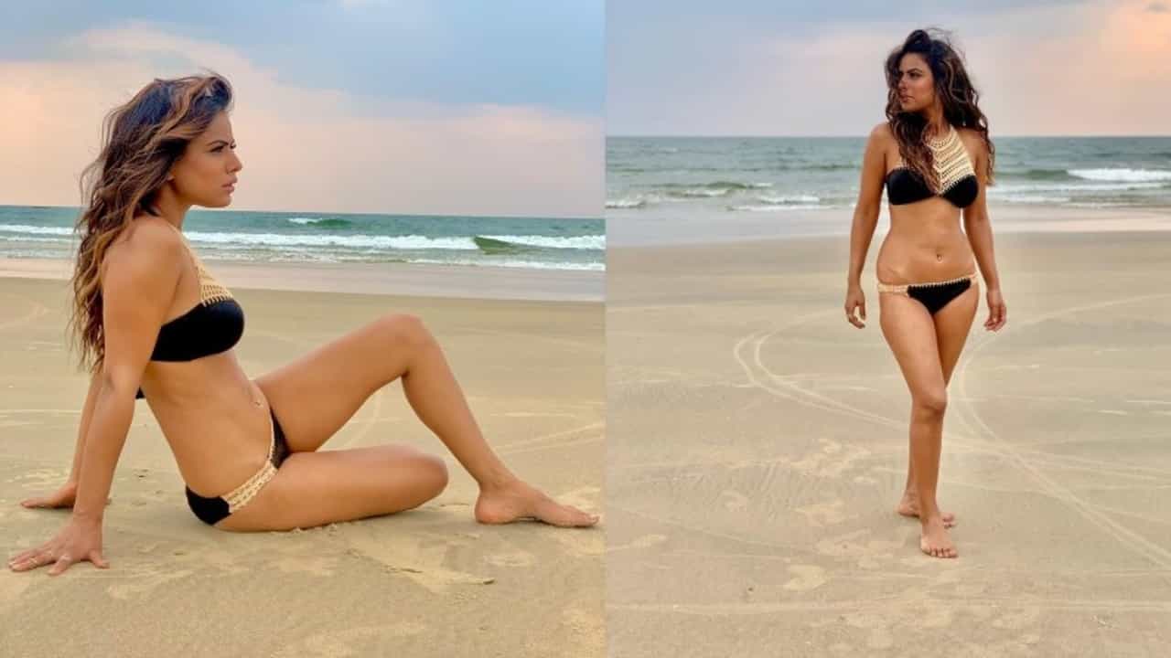 फोटोमध्ये तिनं ब्लॅक-गोल्डन कलरची बिकिनी परिधान केलेली दिसली . ब्लॅक बिकिनीमध्ये नियाचे हे फोटो सोशल मीडियावर व्हायरल होत आहेत. नियानं हे फोटोशूट बीचवर केलेलं आहे.