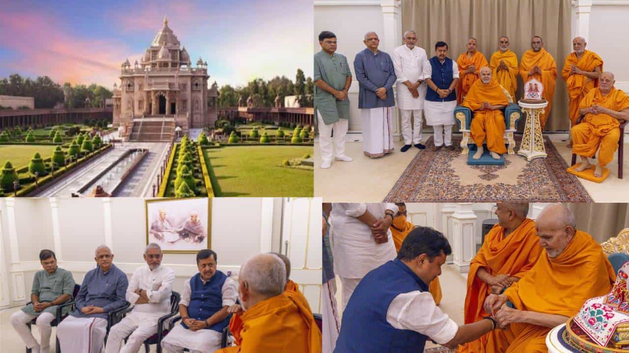 भारतीय जनता पार्टीचे राष्ट्रीय अध्यक्ष नितिन नबीन यांनी गुजरातच्या पहिल्या दौऱ्यावर गांधीनगर येथील स्वामीनारायण अक्षरधाम येथे परम पूज्य महंत स्वामी महाराजांची भेट घेतली. या भेटीत त्यांनी आशीर्वाद घेतले. याप्रसंगी शांती, एकता, सौहार्द आणि राष्ट्रनिर्मितीसाठीच्या मूल्यांवर चर्चा झाली. ही भेट सामाजिक सलोखा आणि समाजाच्या सर्वांगीण विकासासाठीच्या बांधिलकीचे प्रतीक ठरली.