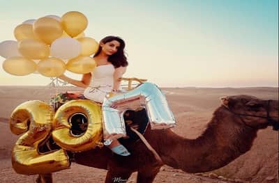 सेलिब्रेशनसाठी तिनं चक्क उंट सफारी केली आहे. उंटावर पांढऱ्या रंगाचा ड्रेस परिधान करुन तिनं फोटोशूट केला आहे.