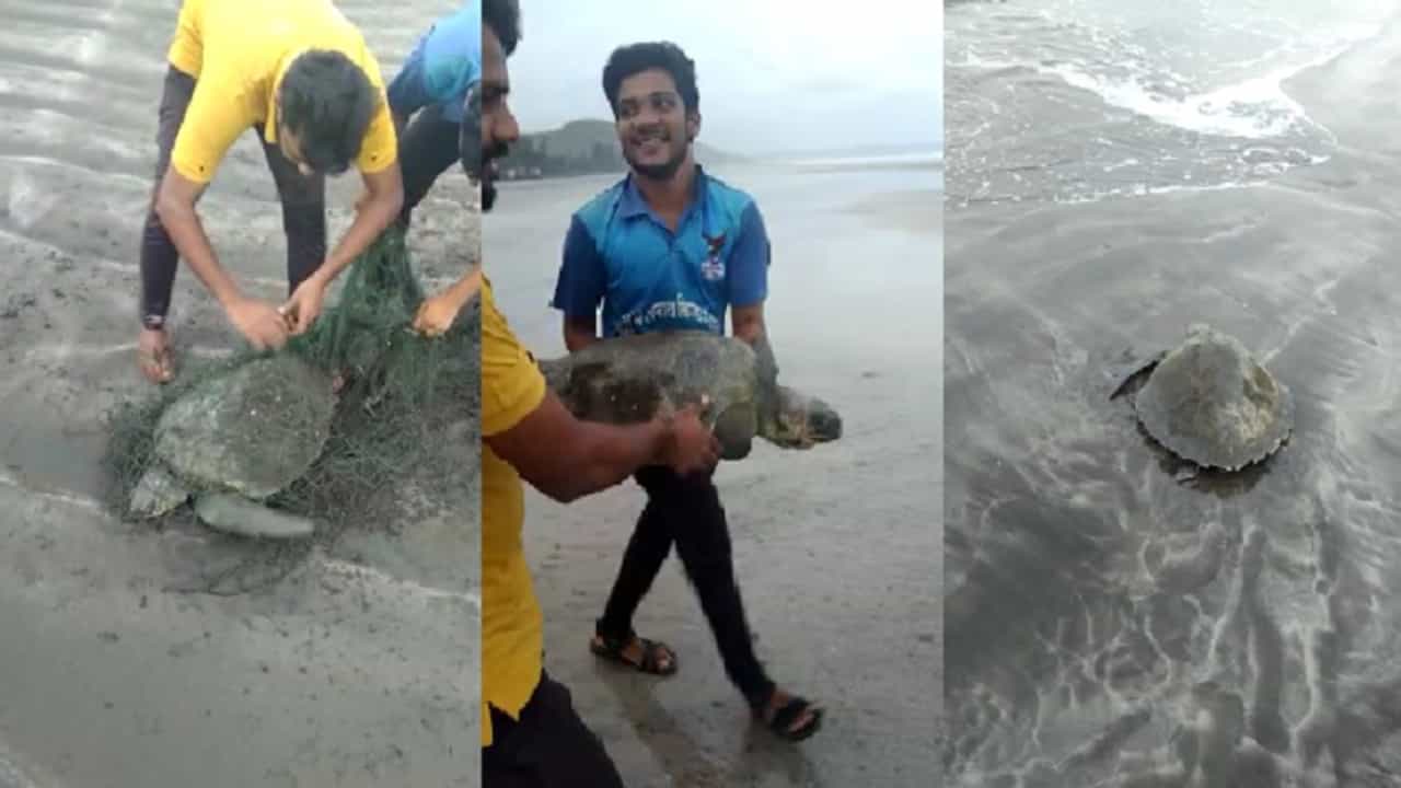 दापोली तालुक्यातील मुरुड येथील बीचवर जाळ्यात अडकलेल्या ऑलिव्ह रिडले कासवाची यशस्वीरित्या सुटका करण्यात आली आहे.