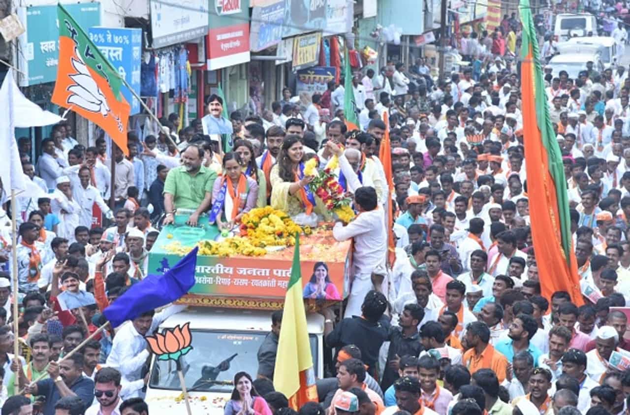 पंकजा मुंडेंच्या रॅलीला मोठ्या प्रमाणात गर्दी जमली होती.
