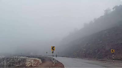 मुंबई गोवा महामार्गावरील परशुराम घाट धूक्यात हरवलेला पाहायला मिळतं आहे. त्या ठिकाणी पर्यटकांची मोठी गर्दी असते.