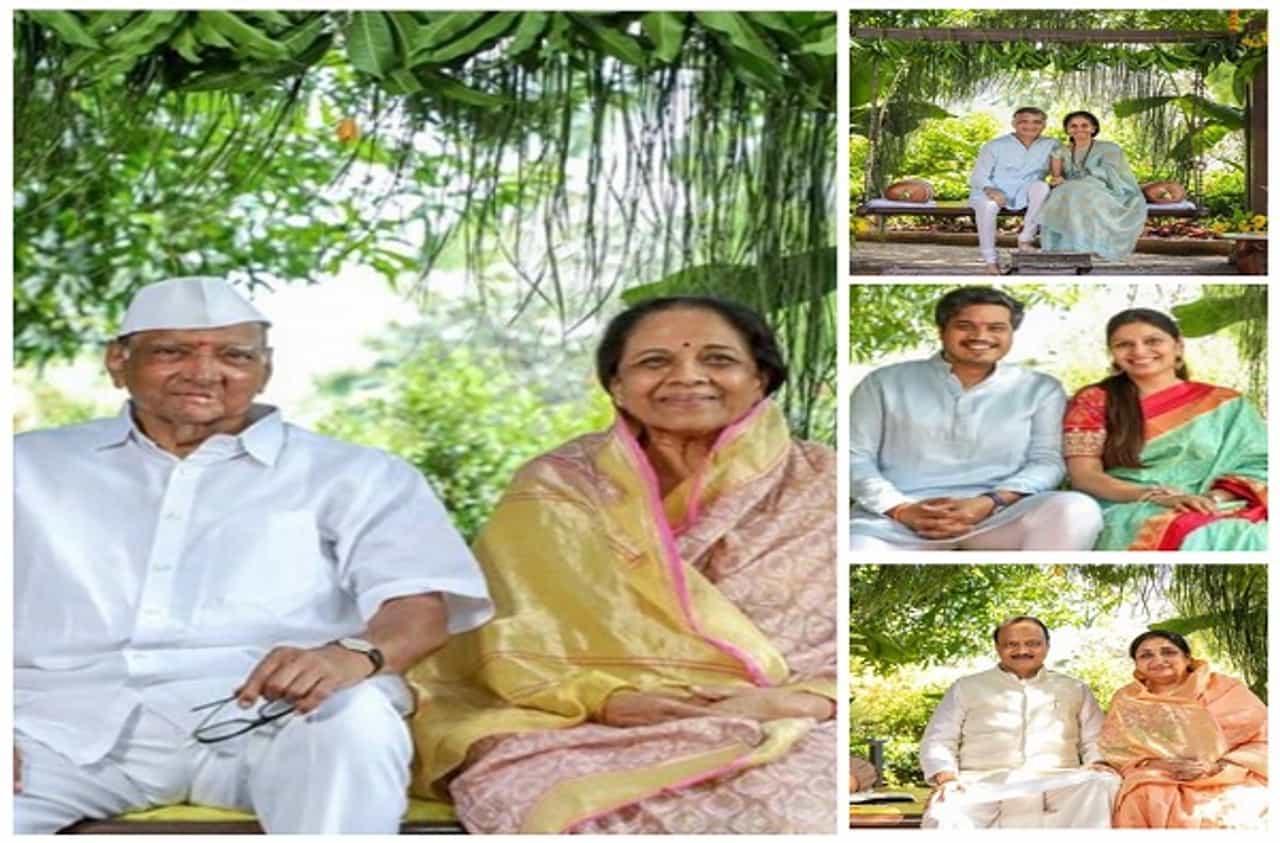 राष्ट्रवादीचे अध्यक्ष शरद पवार यांनी बारामतीतील गोविंदबागेत संपूर्ण कुटुंबासोबत दिवाळी पाडवा साजरा केला.(Pawar family's Padva celebration)